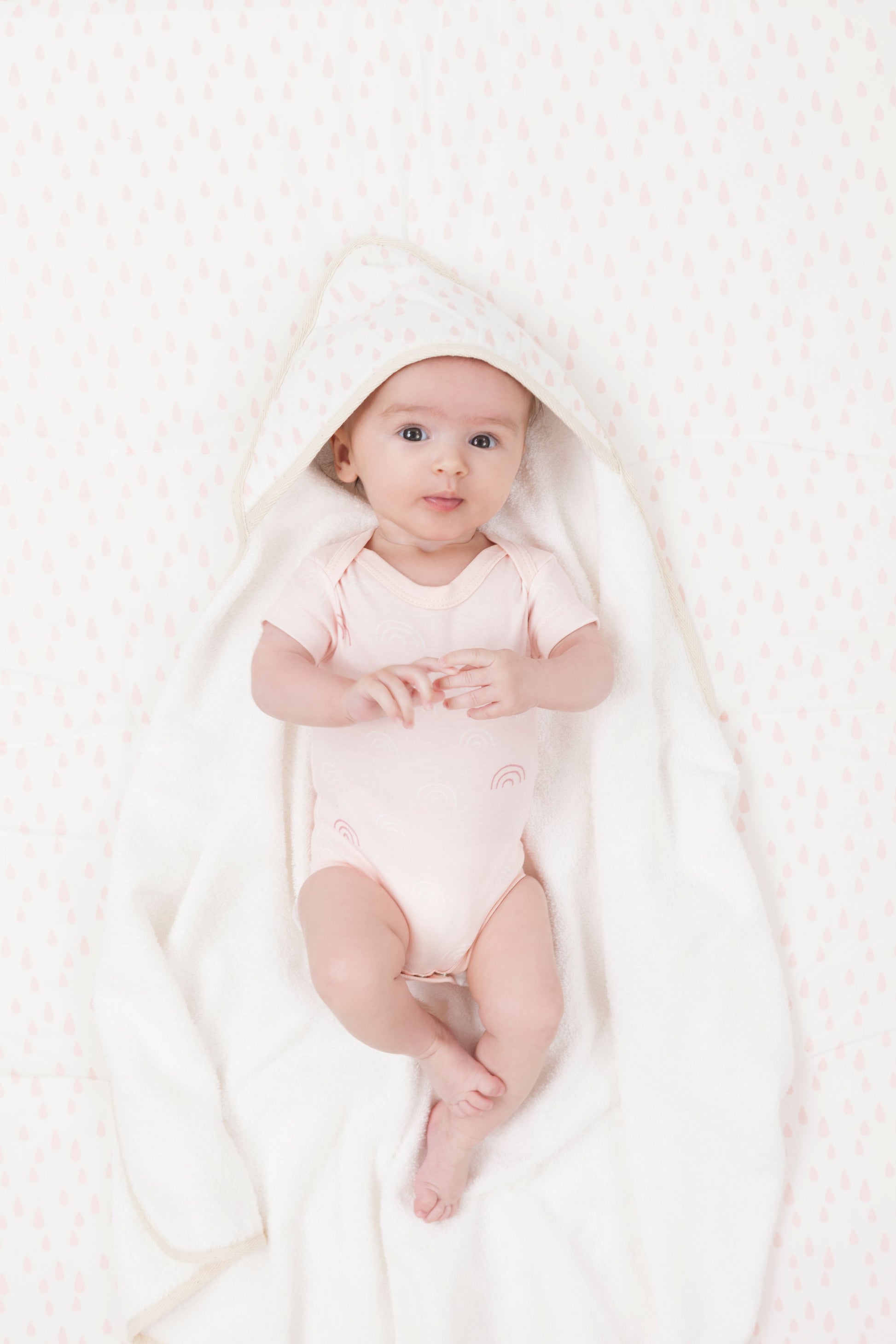 Accappatoio a triangolo in morbidissima spugna BIO, delicata sulla pelle e molto assorbente.