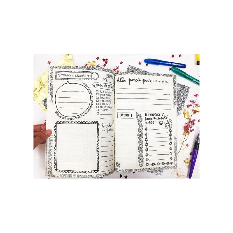 - Incollare foto o ricordi, pagine speciali dedicate ai risvolti più ironici e divertenti della gravidanza.