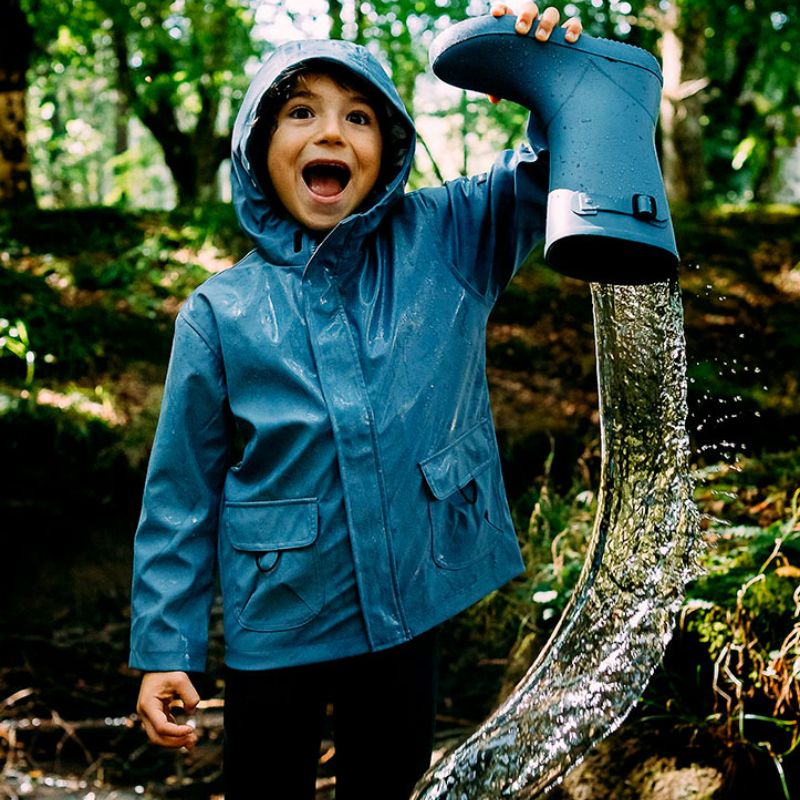 Giacca impermeabile in pvc molto morbida con interno a righe 100% cotone.