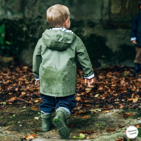 Giacca impermeabile in pvc molto morbida con interno a righe 100% cotone.