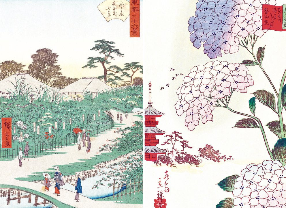 Rocce che emergono da un mare di ghiaia, sipari di glicini e iris rinfrescati dalle acque di un ruscello, distese di loto a coprire uno stagno, ciliegi in fiore o aceri rosseggianti, solitarie lanterne di pietra... Dalle stampe di artisti quali Hokusai, Hiroshige, Gekko e Chikanobu emerge la placida presenza dei giardini, armonici universi in miniatura che completano l’essenza di case da tè, templi e dimore nobiliari. Gli ottanta capolavori dei maestri dell’ukiyo-e presenti in questo cofanetto celebrano gli spazi concepiti per meditare sull’esistenza contemplando la cangiante bellezza della natura.