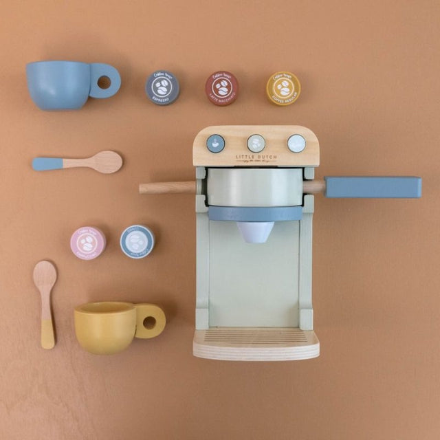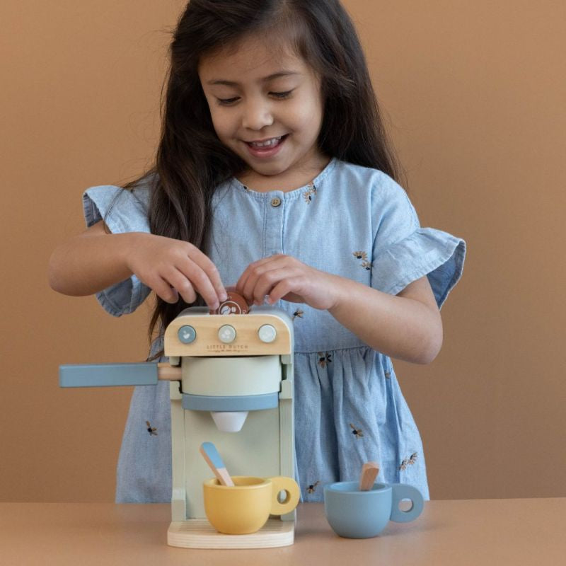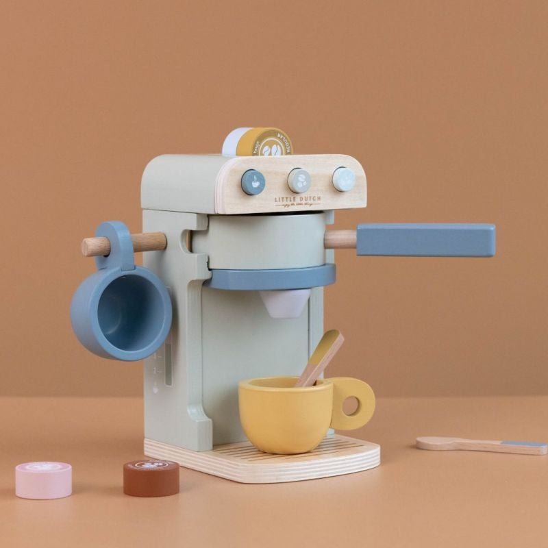 I bambini adorano fare cose da adulti, come preparare una tazza di caffè. La macchina da caffè in legno Little Dutch include due tazze, due cucchiai e cinque gusti di caffè in piacevoli colori: lungo, cappuccino, latte macchiato, caffè classico ed espresso. Il set si inserisce perfettamente in cucina con i giocattoli in legno. Dettagli prodotto: Materiale: legno + MDF Età: 3 anni+ Dimensioni: 13 x 23 x 23 cm Dipinto con vernici a base d'acqua adatte ai bambini Il set include: 1 macchina da caffè in legno con 9 accessori