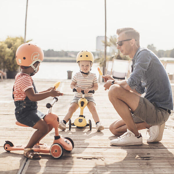 Il monopattino 2in1 Highwaykick 1 permette di passare da monopattino a cavalcabile in un gesto. Pensato per bambini da 1 a 5 anni (fino 118 cm di altezza) sarà un gioco che durerà a lungo. Per la trasformazione non servono attrezzi, basteranno due semplici gesti e il monopattino diventa un comodo cavalcabile. Perfetto per far sedere il bambino quando è stanco o per divertire anche i più piccoli. Un gioco stabile e sicuro dal design moderno che permette al bambino di sviluppare il senso dell’equilibrio e la coordinazione. materiali di grande qualità e sicurezza prima di tutto. Un innovativo cuscinetto protettivo impedisce il classico ribaltamento in avanti quando il terreno è sconnesso o la ruota si blocca.