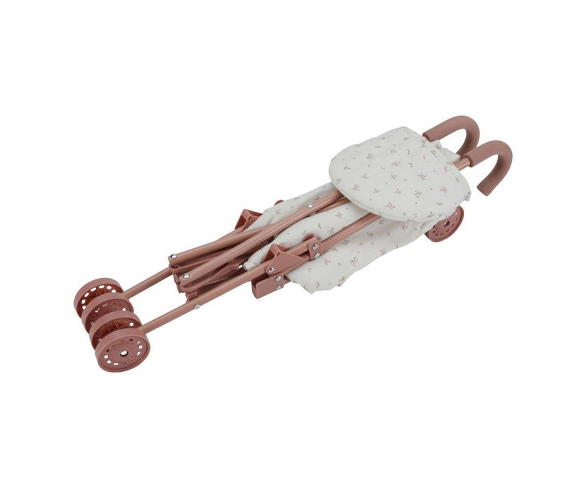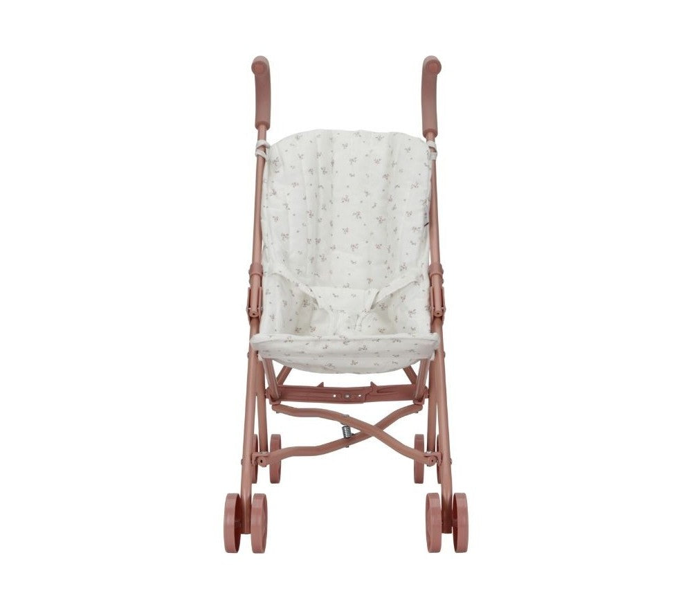 Passeggino in metallo con chiusura a ombrello. Comoda tasca portaoggetti sul retro.