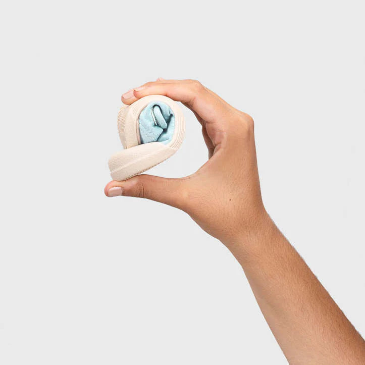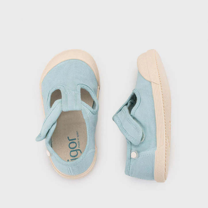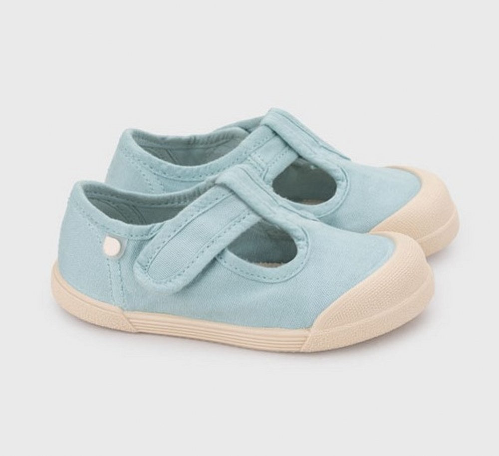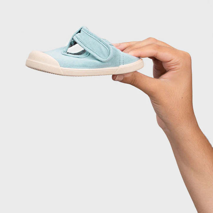Scarpe in tela con strappo velcro, 100% cotone, concetto barefoot, senza rialzo, flessibile, morbida e con plantare estraibile.