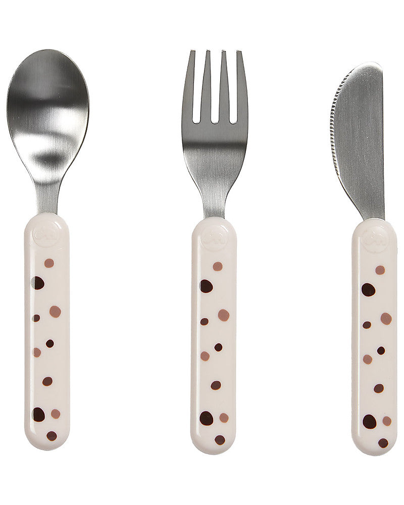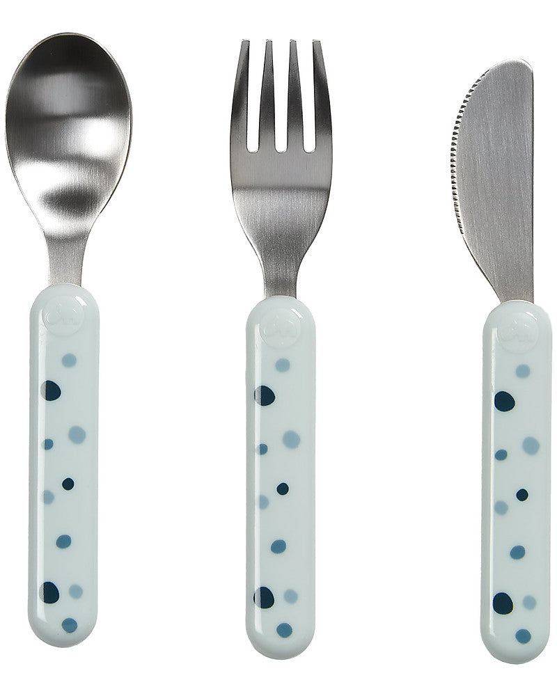 Facili da afferrare anche dalle manine dei più piccoli. Il set comprende una forchetta, un coltello e un cucchiaio.