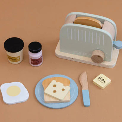 Con il tostapane di Little Dutch i vostri bimbi potranno imparare come “tostare” una fetta di pane e avranno anche a disposizione un coltello di legno e tutto l’occorente per preparare un panino.